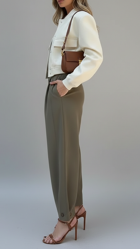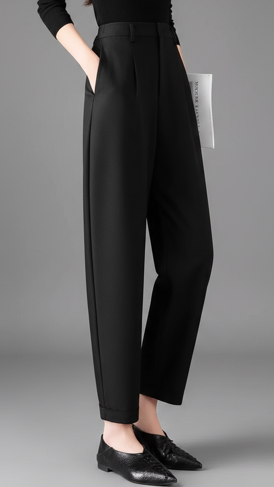 Elegant High-Waist Wide-Leg Pants with Elastic Waist and Front Pleats